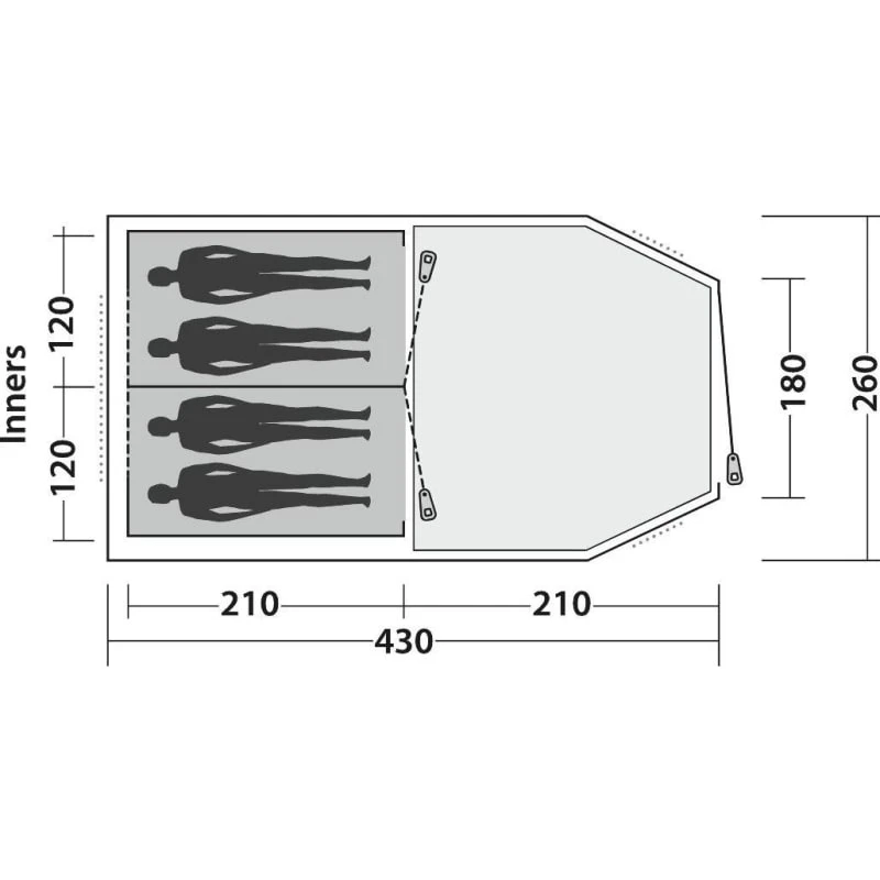 | Innertelt mĂĄl: | 210 x 240 x 150/160 cm |